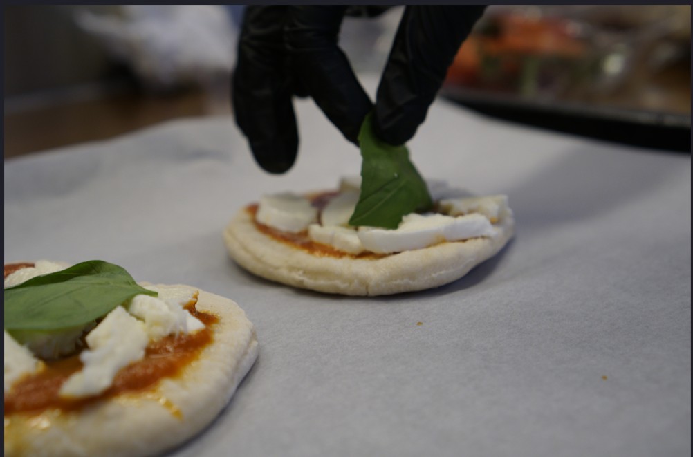 Menyen var en treretters meny der gjestene selv kunne velge forrett (Caprese eller pizza Margarita) Hovedretten var hjemmelaget pasta Carbonara eller Bolognese. Dessert tallerken med tiramisu og brownie.